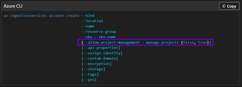 In later Azure CLI updates, I noticed that this parameter was added to az cognitiveservices account create and now defaults to true so I thought I was home free. It’s even called out nicely in the above-linked Microsoft documentation: